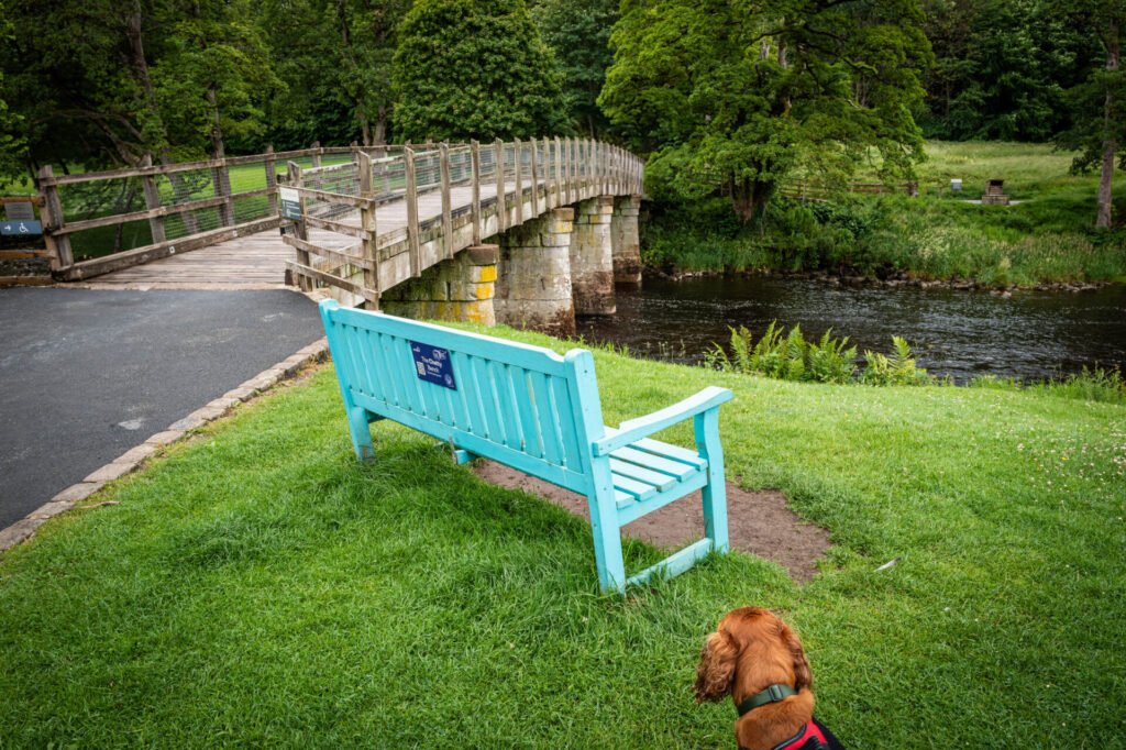 This is the bridge over the river at the Pavillion cafe, lovely coffee and cake. Charlie agreed with me that this bench, does indeed have a good view. Another bench with a view.