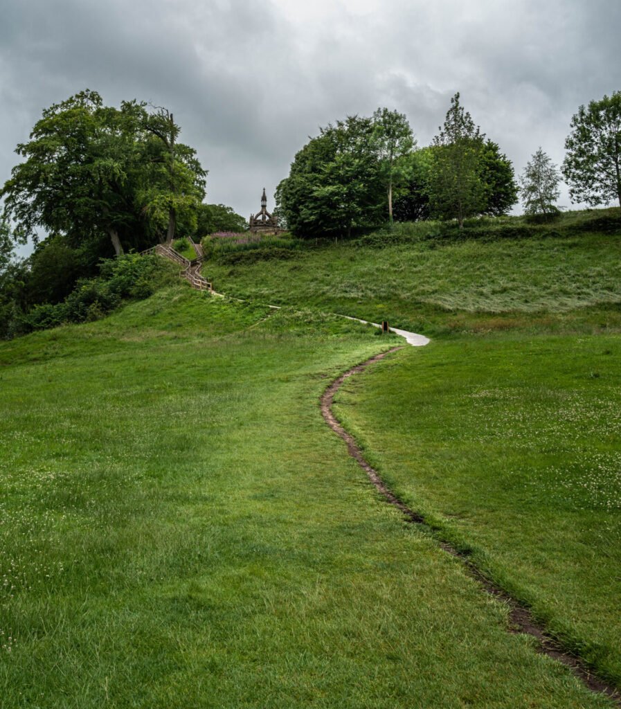 Once over the fence, choosing the path to the right, you can cross the field towards the monument you can see in the distance.