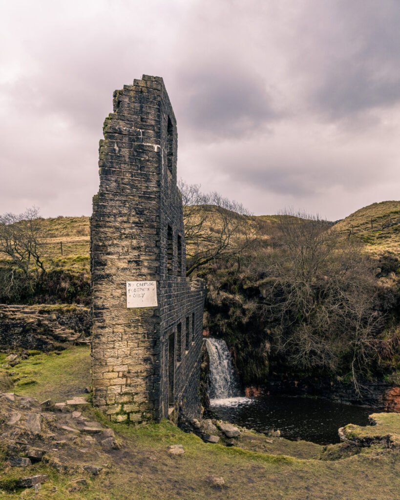 Winding its way down the valley is Cheesden Brook, and too my amazement there is a small waterfall, more than a weir for sure. There are lots of small rocks to add foregraouynd interest to this shot, as well as some strong lines moving the eye from one place to the other ultimately ending up at the waterfall. Clearly this brook was the source of the water that would have been used by whatever was made or produced in this small mill. Ingenuity at its best.