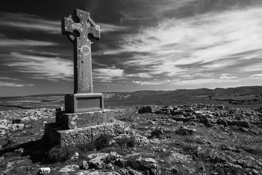 We headed onto the otherside of the M6 and through a lovely little village of Orton, and out towards Great Ashby Scar, firstly stopping at the monument on Beacon Hill. Given that it was just after the middle of the day, and only “mad dogs and Englishmen” would be out, Chris suggested that I try my hand at some black and white shots, of the monument and limestone around it.