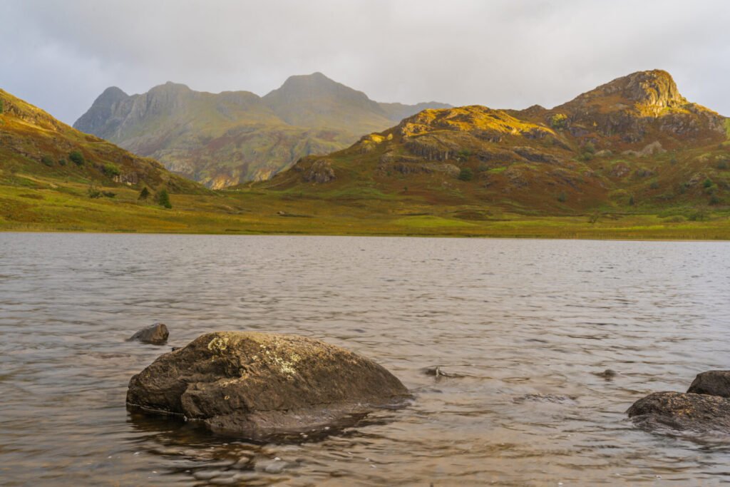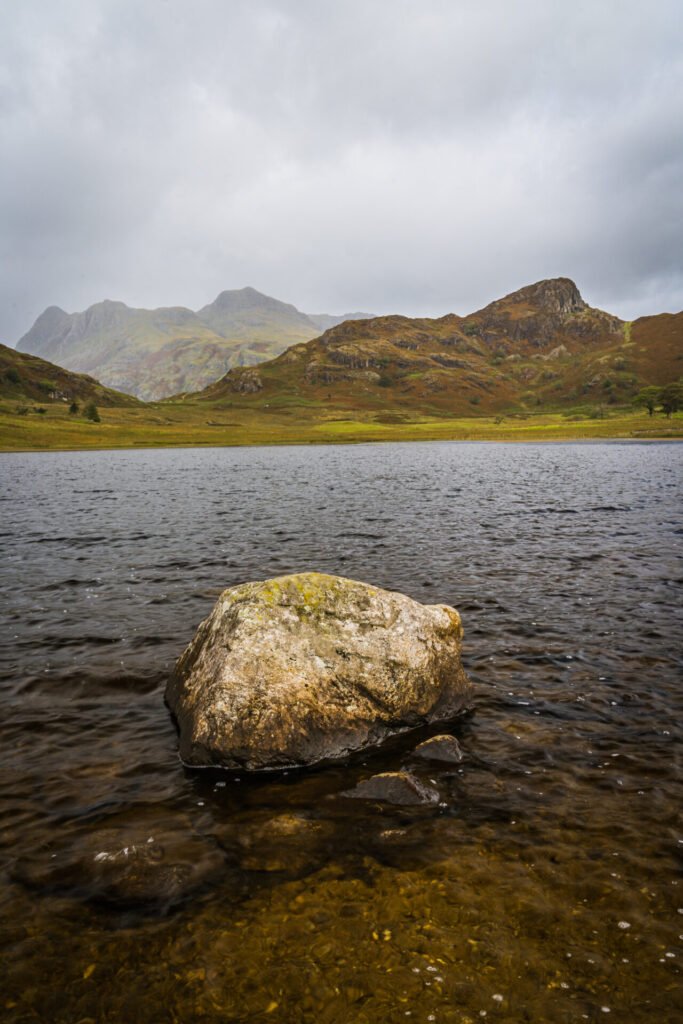 At this point we decided that it was time to head back down off Side Pike and make our way back to the cars. We picked our way slowly back down (almost) the same way that we had gone up. A couple of slips and slides later and we were back on the path to Blea Tarn. The weather was ok at this point so we took the opportunity to go back onto the beach at Blea Tarn and get some more images. This last image is of Side Pike in Portrait orientation using what available foreground interest there was, namely lumps of rock in the water. I was really pleased again with this image on the back of the camera and I think it’s turned out fine after post processing.