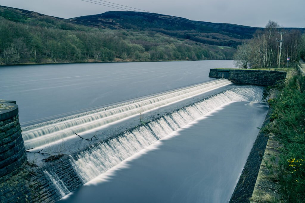 I have ventured around these parts before, and have walked around Torside and Rhodeswood Reservoirs that are further along the valley. In fact there are paths that connect all of these reservoirs and are a part of an official trail. I had parked my car no more than 500 yards away from where this next image is taken. I don’t know what it is about this sort of thing but I find them fascinating. Usually this sort of overspill or weir, or whatever the official title is, are much smaller than this. The water was moving quite quickly over the weir, effectively emptying from Valehouse Reservoir into Bottoms Reservoir. This sort of scene lends itself perfectly to a long exposure image and I did take few different versions of this image. This version id with my A7iii, with my 24mm to 105mm f4 G lens. Its at 33 mm focal length with a Lee Filter Big Stopper and polariser. This gave me a 52 second exposure which was in bulb mode using my bloothtooth remote. I really like this image, it gives a real sense of the movement of the water even though it is silky smooth due to the long exposure.