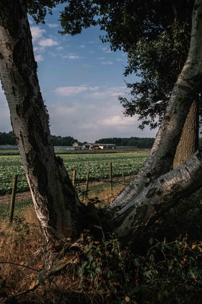 As I walked around the footpaths identified on the OS map app, it took me through some pretty ordinary parts of this area, but one of the paths went around the edges of a small forest that skirted a farm. The image above is a fairly simple framing of the farm buildings by the intersection of the main branches of this tree. Again not portfolio worthy but I like it all the same.